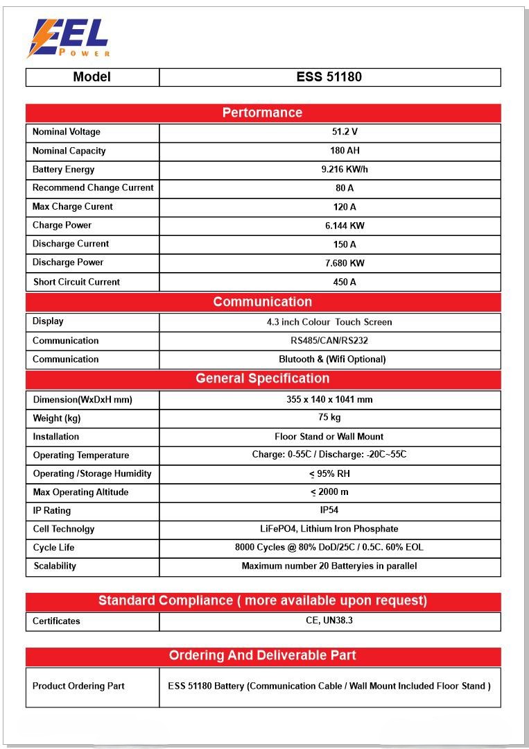 Product Specifications – EEL Power ESS 51180