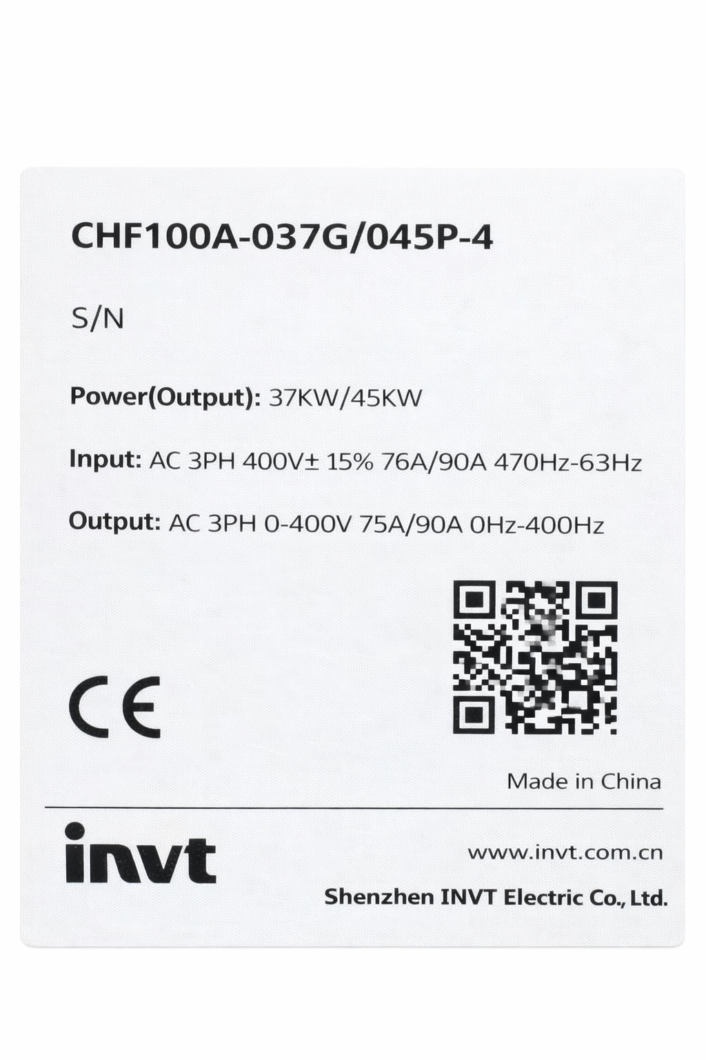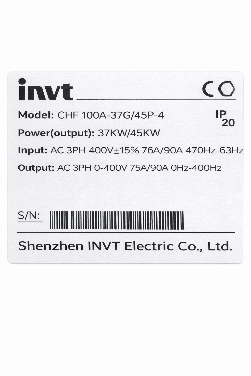 - Model: Invt VFD 37/45KW